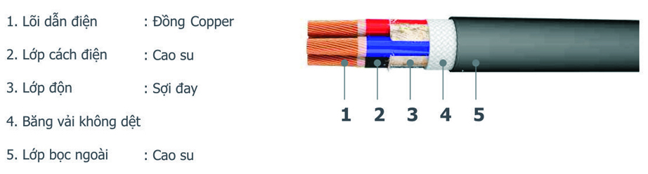 Cáp điện 3, 4 lõi vỏ bọc cao su - Cu/NR 450/750V