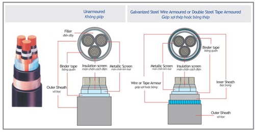 Tiết diện: 50, 70, 95, 120, 150, 185,240, 300 mm2